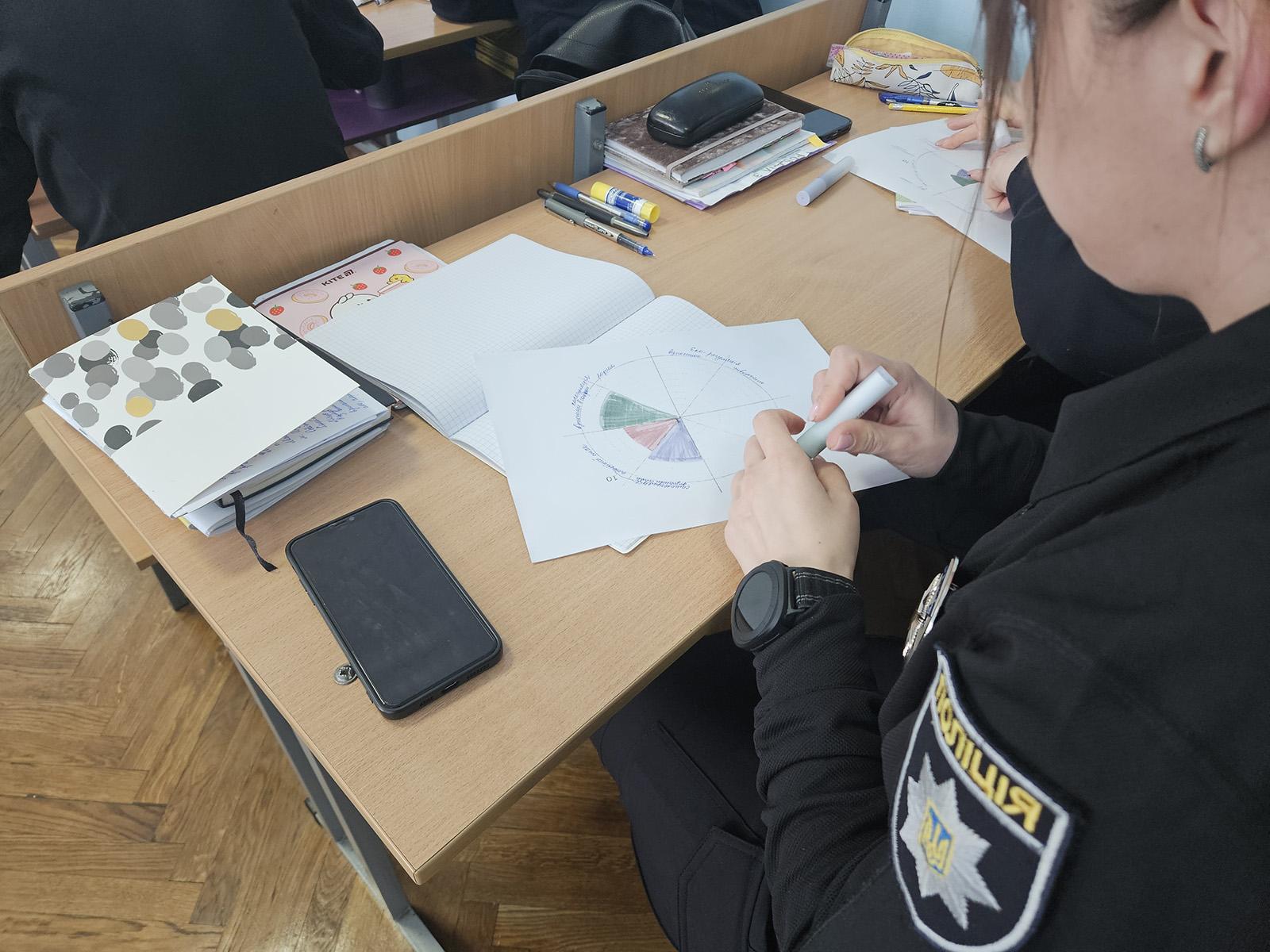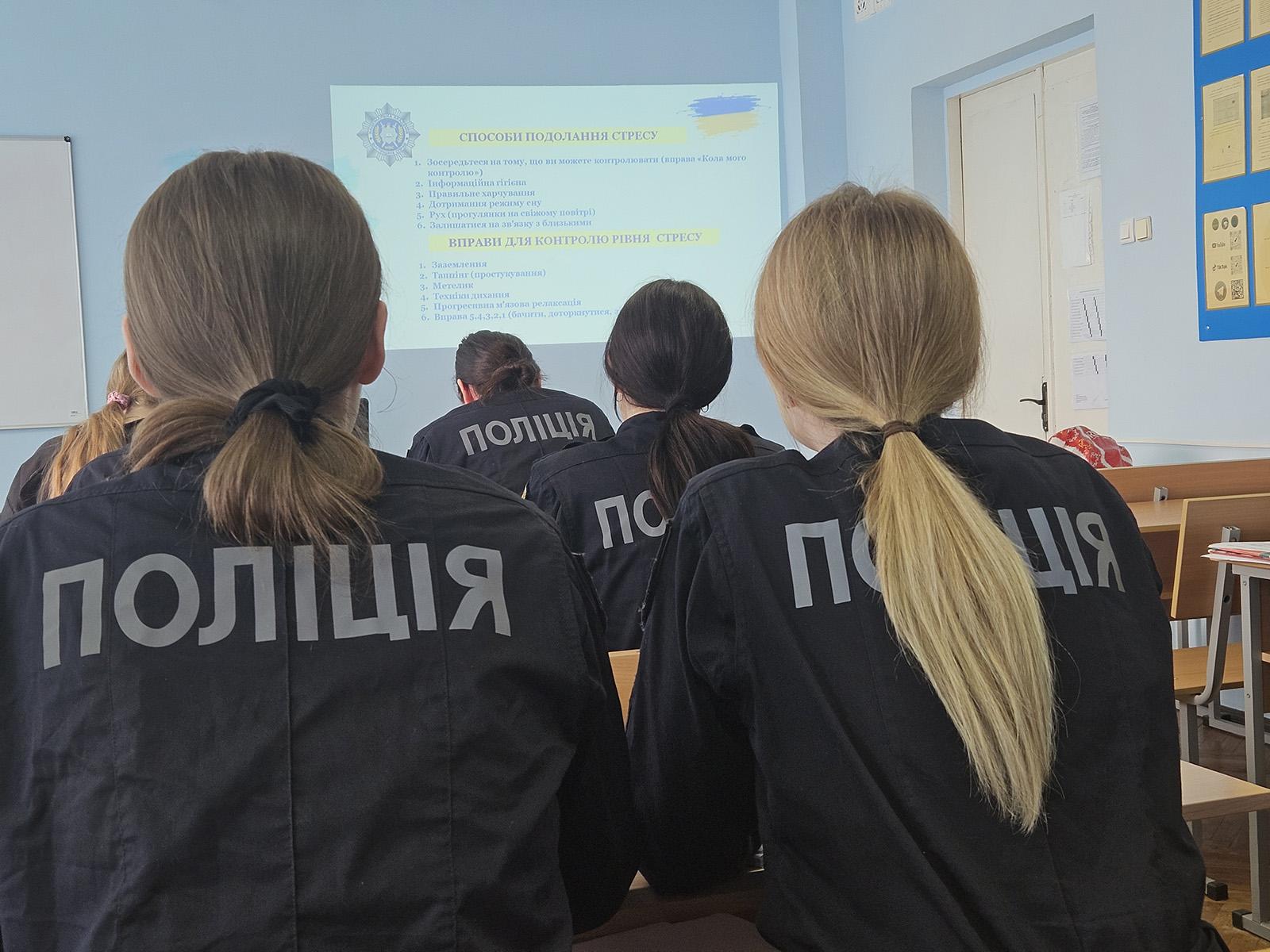З метою попередження емоційного вигорання, формування стресостійкості та психологічної резильєнтності викладач циклу загальнопрофесійної підготовки Київського центру спеціальної професійної підготовки «Академія поліції» Лариса Марусіч провела практичне заняття, спрямоване на розвиток навичок протидії стресу та збереження психологічної рівноваги.